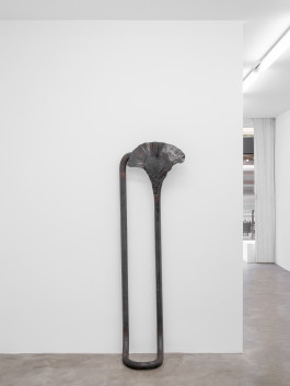 For Tube, her third solo exhibition at GALERIE CHLOE SALGADO, Lulù Nuti continues her exploration of these questions and investigates the properties of iron, a material she sculpts and transforms into a moving body, whose initial rigidity gives way to more organic forms. Her approach remains rooted in an intellectual and sensitive engagement with matter, which becomes a vehicle for a poetic language where the intimate merges with generational inquiries. The exhibition is accompanied by a text by Noémie Pacaud.