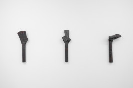The presence of these three anatomical ex-votos in the exhibition clarifies the materialistic approach that infuses Nuti's work, asserting both the energetic and affective charge incorporated into the object and the fundamental role of the hand’s relationship with the material. This is particularly significant in all artisanal practices, but even more so for the blacksmith, whose technique originally stems from the art of toolmaking. The hand, the tool, and the form merge, symbolizing, by metonymy, the continuity and reciprocity of agency between technique and material, gesture and form. While the three pieces unequivocally illustrate popular playful practices of games and wagers, their representation as fragmentary limbs also invokes their symbolic and emotional functions, akin to popular votive practices.