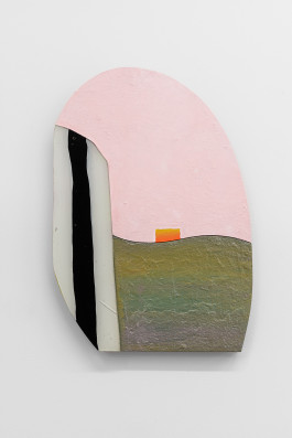 Closing Credits, Hugo Avigo, fibre de bois, laque polyuréthane, acrylique, toile de lin et cuivre, 54 x 69 x 3 cm, 2021 - Photo : Grégory Copitet © Hugo Avigo & GALERIE CHLOE SALGADO