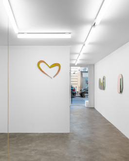 For his solo exhibition at the GALERIE CHLOE SALGADO, Hugo Avigo presents us with a cold open. Yet, here, the sun is square, the uphill street escapes us, and the hollowness of the back is transported to the center of a heart. Decorative by way of pop, and troubling by way of absence, the works of Avigo throw us into a story that never was, a narrative with neither beginning nor end, a cold open of ambiguity and doubt.