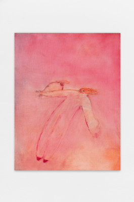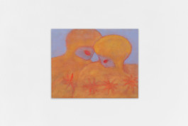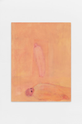 The colourful worlds of de Haas's work are home to figures with discernible bodies that are nonetheless impossible to identify properly. They may be men, or women, or soft silhouettes; floating forms that melt into a landscape of textures. This dwelling of minimal perspectives, made up of a simple horizon line and tones of colour, becomes the gestation organ of a kind of ruminative mood. Orange, pink and brown contrast with bluish and black hues, plunging us into a new ambiguity concerning the content of the emotional atmosphere. The childlike or amorous dream is mixed with a sense of unease and confusion. Eli de Haas effectively seeks out this confusion, which seems to be the condition for formulating and receiving the emotions at work in the image. Joyful calm can be coupled with dull anxiety, and the reassuring hand on a shoulder can, at the same time, become the sign of a suffocating hold.