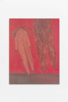 In this way, Eli de Haas grants his painting a form of autonomy that cannot be circumscribed by his intentions as the author. I know you - It's a gesture of recognition as well as an admission of irreducible ignorance - I know you (because I know that I will never fully know you... but I will never stop trying). The title, then, also indicates the point of departure: recognizing the existence of the other in their autonomous being, to allow the product of this relationship to come to fruition. The relational motif recurs at every level of the artist's work. A dualism invariably persists in each of his compositions. It induces a systematic tension, suggesting that the subject is less what appears before our eyes than what happens in the liminal space of the encounter between the ego and its alter. Sometimes a split, sometimes a ghost, a desire or a threat, this relationship is brought about by confrontation in a game of mirrors, by distancing, or by drawing closer together, or even by the confusion of bodies melting into one another. It grabs our attention and places it in the place of the unspeakable - the in-between.