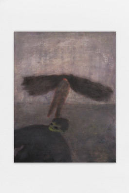 Many of the recent works presented in the exhibition reflect a new evolution in the artist's practice, who now prefers painting on wood to canvas. The rigidity of the surface allows him to multiply the number of layers, to scratch, to rub, to create and dissolve apparitions on the surface of the image, while maintaining the finesse of the material and the vibrancy of the colours. In this way, he further distances himself from a linear compositional framework whose sequential construction could be read at first glance. The image lives by itself, the hand moves faster than the mind, and what germinates for a moment in the painting may become an imperceptible spectre in a landscape that finally reveals itself before our eyes. Technique, then, is not an exercise in style. It is a means of shaping the relationship between the hand and the work, allowing the reciprocal intentions of both to coexist on the same plane, equally valued.